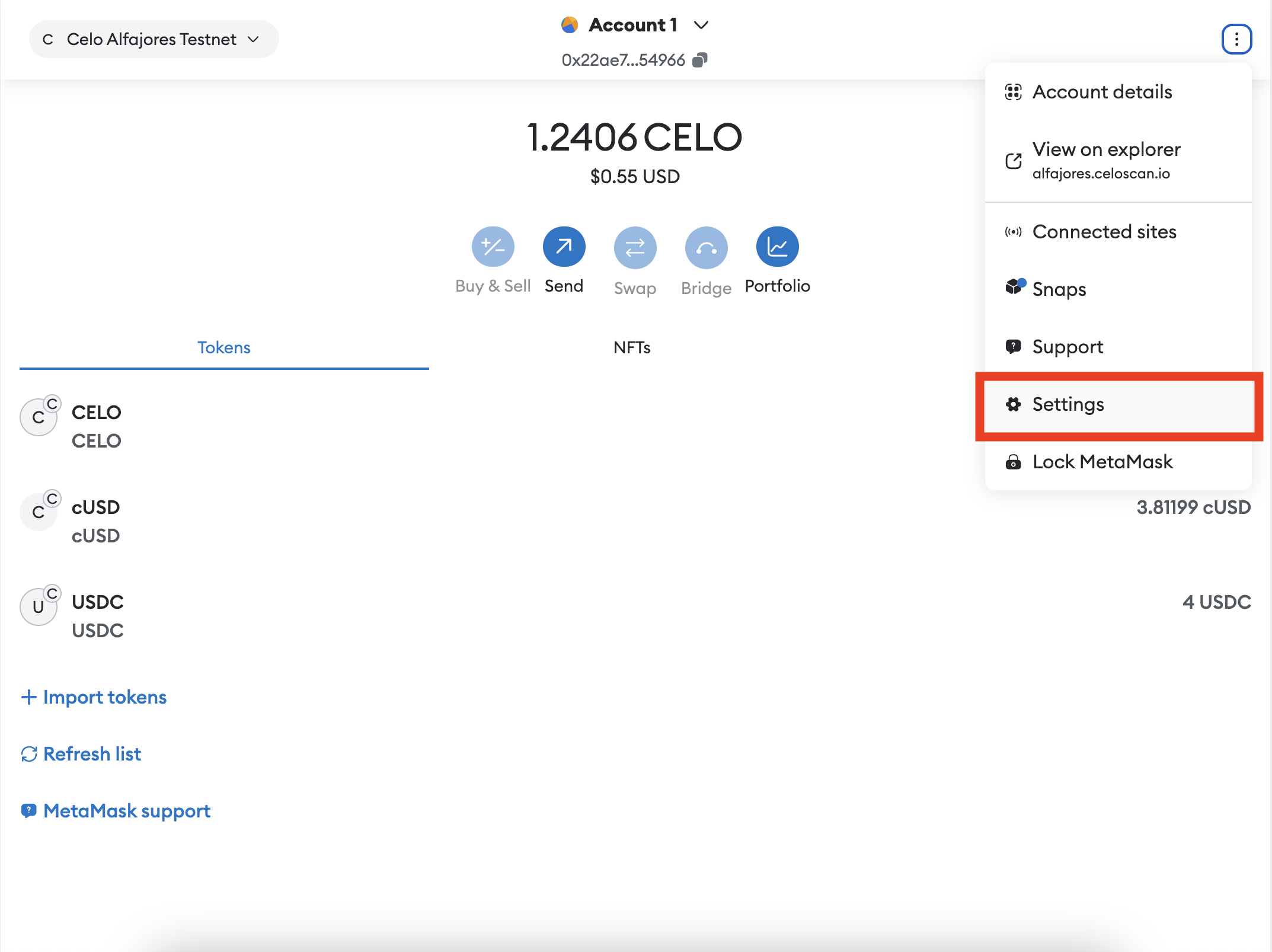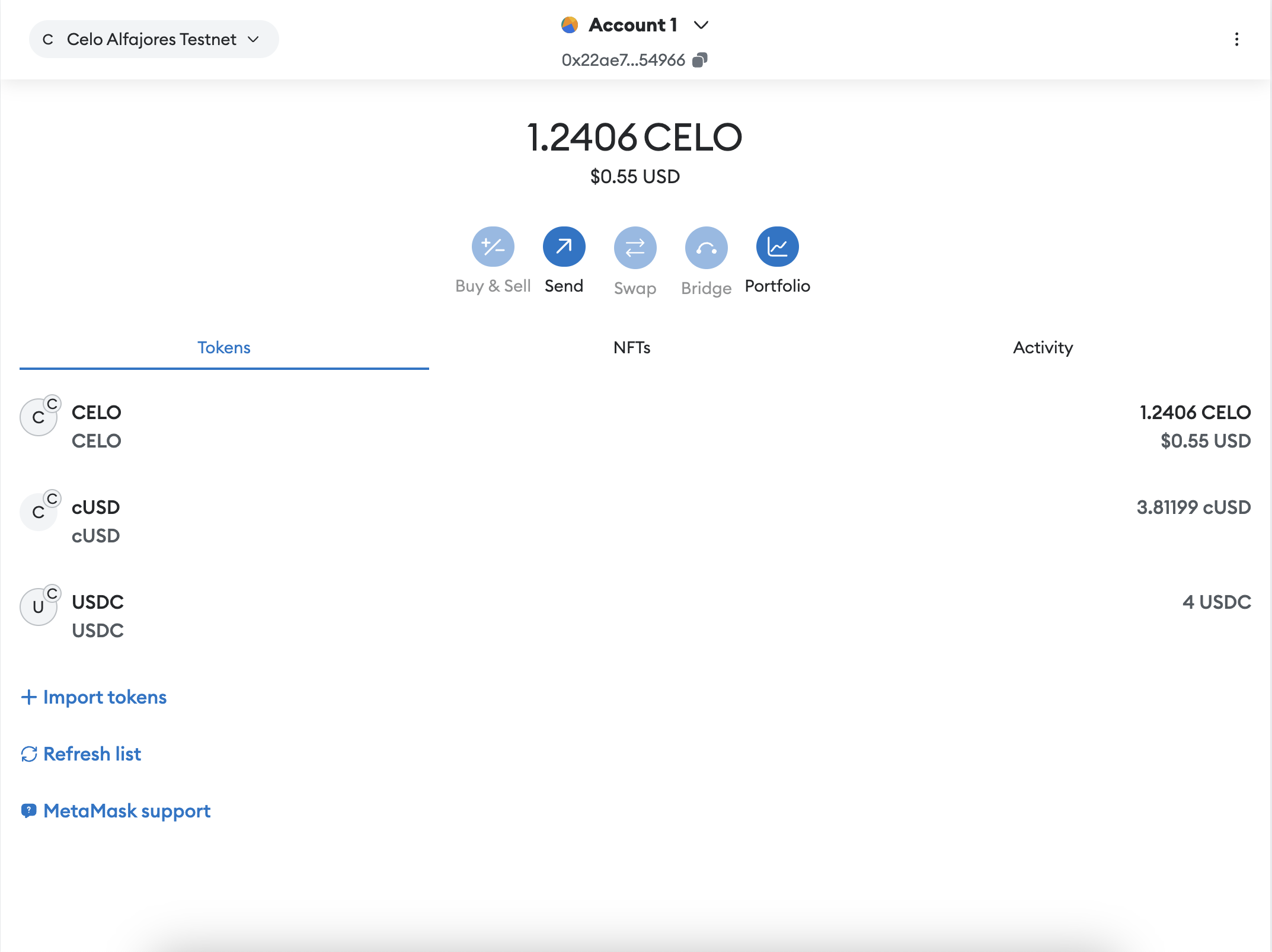 Follow this quick guide to add Alfajores to your MetaMask wallet and start playing around with it. You can get funds from the Alfajores Faucet.